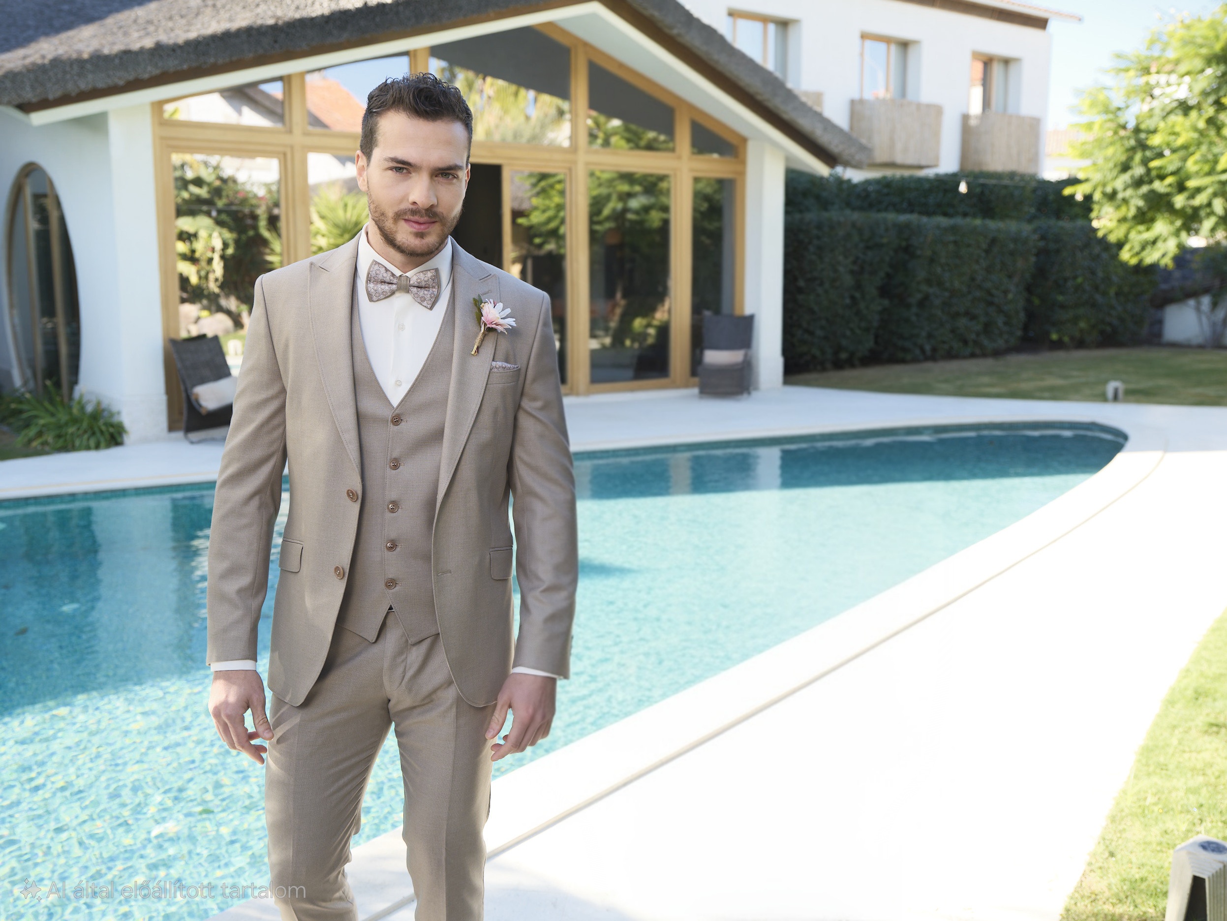 MANZETTI extra slim fit bézs esküvői öltöny