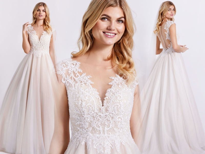 Romantikus LILLY menyasszonyi ruha, csipke felsőrész csillogó tüll szoknyával.